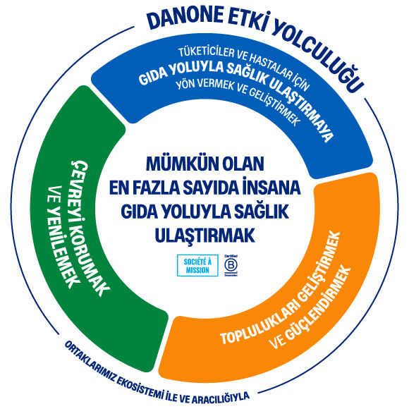 Danone Türkiye olarak faaliyetlerimizi sosyal fayda ve çevresel sürdürülebilirliği merkeze alarak yürütüyoruz.